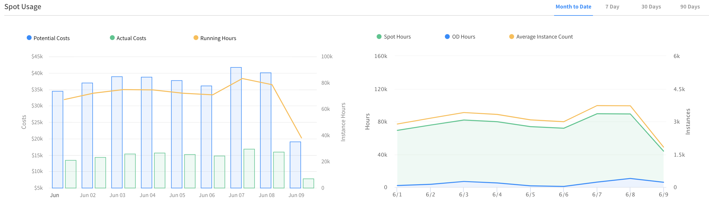 • Actual Spot Costs: A calculation of your actual costs taking into account the spot instance utilization.